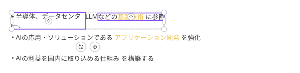 上の図を見てもらうとわかりますが、一つの文章の中にテキストボックスが3つあります。