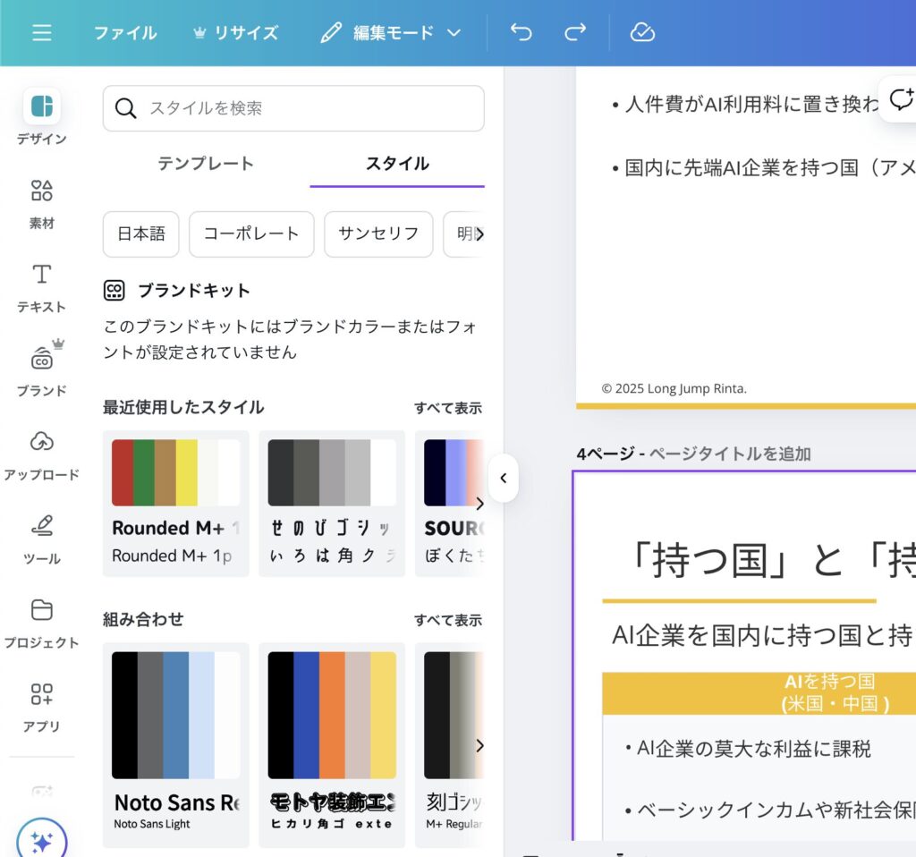 Canvaには「スタイル」があって、一括で編集できるのです。